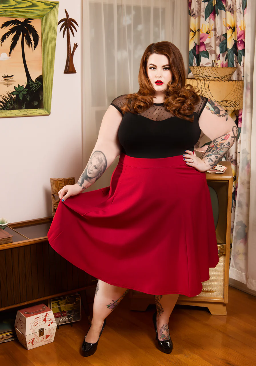 The Miss Fancy Top is the perfect top to add to your pin up wardrobe! It's great for any occasion. The contrast of this swiss dot top shows off one of your best features, and a little peak-a-boo back hole is a cute accent for your back!