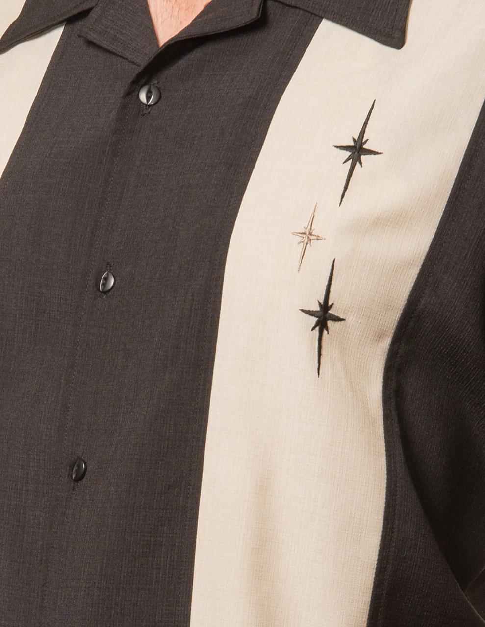 Three Star Panel Bowling Shirt in Black